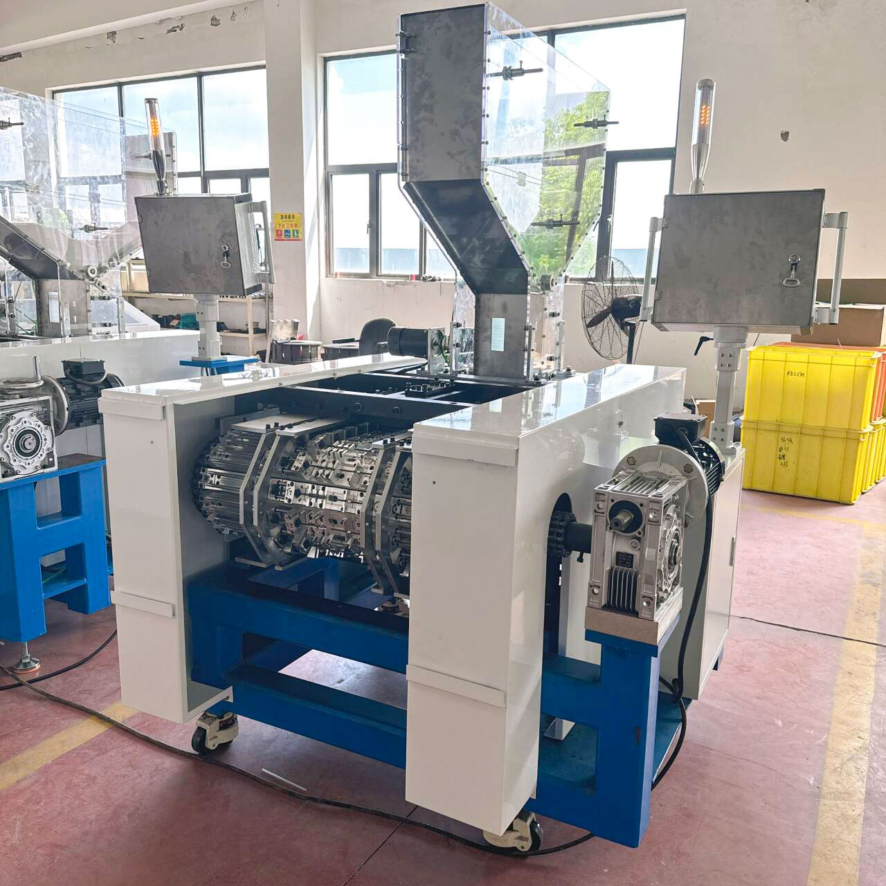 3.出料裝置增設不銹鋼接料斗,勞動強度低,1人可以操作2臺設備
